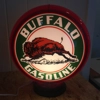 Buffalo Gasoline gas pump globe - includes light base! *light bulb not included* WE ALSO OFFER THIS SAME GLOBE WITHOUT A LIGHT UP BASE - REACH OUT FOR THE LISTING OR CHECK OUT OUR SHOP!Two 13.5" glass concave lenses on a plastic globe body - looks perfect lit up on top of a pump or also on top of a light post! Light base made with wood, metal and is all wired and ready for you to add a bulb and light up! See all photos to see what this globe looks like lit up!