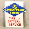 Goodyear die cut sign - single sided, brand new, alumalite core between aluminum metal sheets with decal. Safe for outdoor use, UV protected, will not rust or fade!
