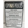 *NEW - MADE IN THE USA!* Company Policies metal sign.Made of aluminum, single sided, light weight and all ready for hanging!