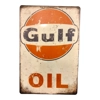 This is a rustic - looking, metal, silkscreen sign that has folded edges.