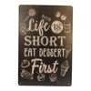 This is a rustic - looking, metal, silkscreen sign that has folded edges.