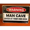 Welcome to the ultimate man cave! Make a bold statement with our brand new, embossed aluminum WARNING MAN CAVE ENTER AT YOUR OWN RISK sign.