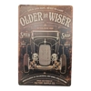 This is a rustic - looking, metal, silkscreen sign that has folded edges.