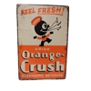 This is a rustic - looking, metal, silkscreen sign that has folded edges.