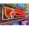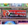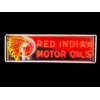 The Porcelain Red Indian Motor Oils Neon Sign is a vintage-style gas sign featuring a classic Native American motif associated with the gas and oil industry. This collectible advertising piece adds a touch of nostalgia to any space with its retro design and unique theme. Perfect for collectors or those looking to decorate their home or business with a piece of automotive history, this sign captures the essence of a bygone era in the petroleum industry.