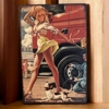 This is a rustic - looking, metal, silkscreen sign that has folded edges.