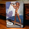 This is a rustic - looking, metal, silkscreen sign that has folded edges.