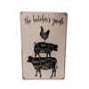 This is a rustic - looking, metal, silkscreen sign that has folded edges.