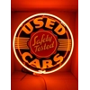 Used Cars neon is 24" round in a full can (front, sides & back enclosed).Made right here in the USA!